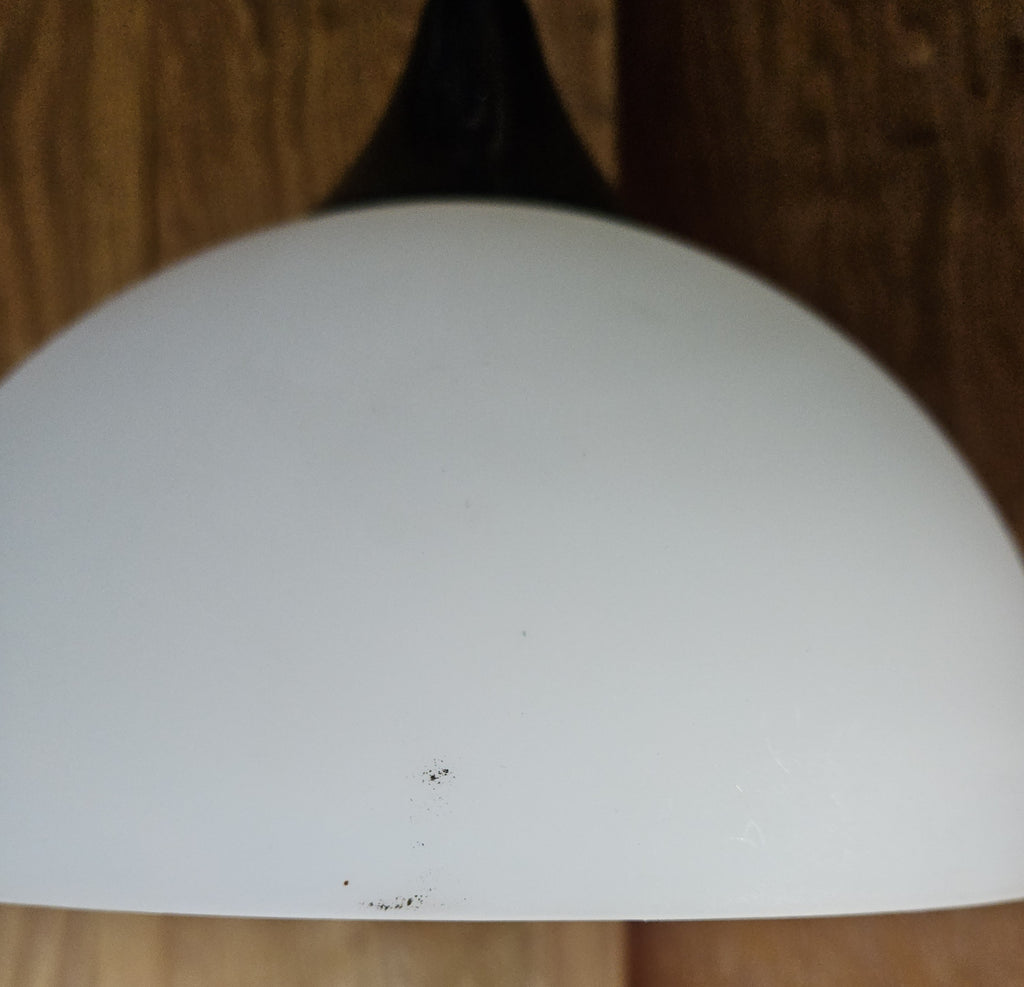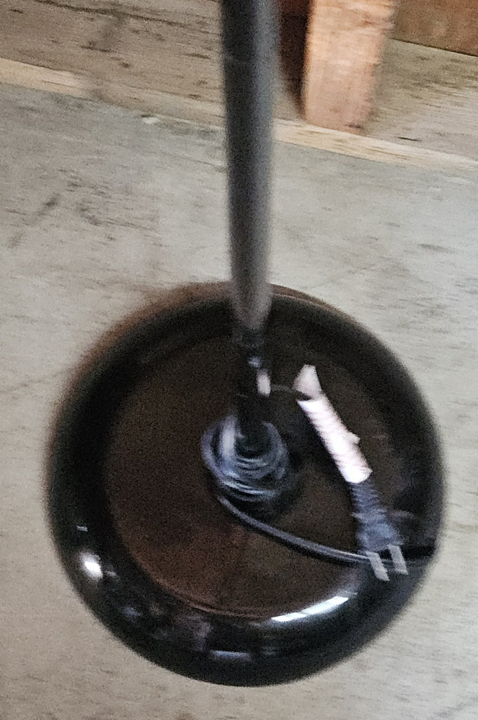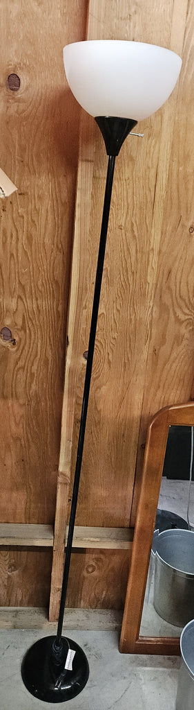 Local pickup only. Base measures 9" across. White plastic shade is 9.5" across. Has some light wear on the shade. 6682-B0009