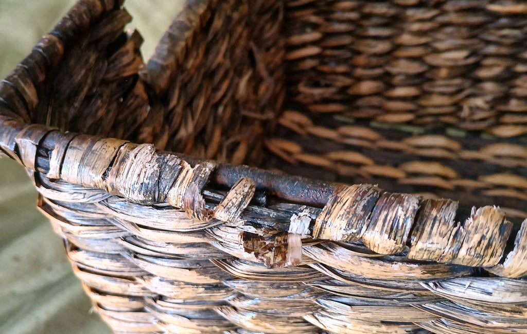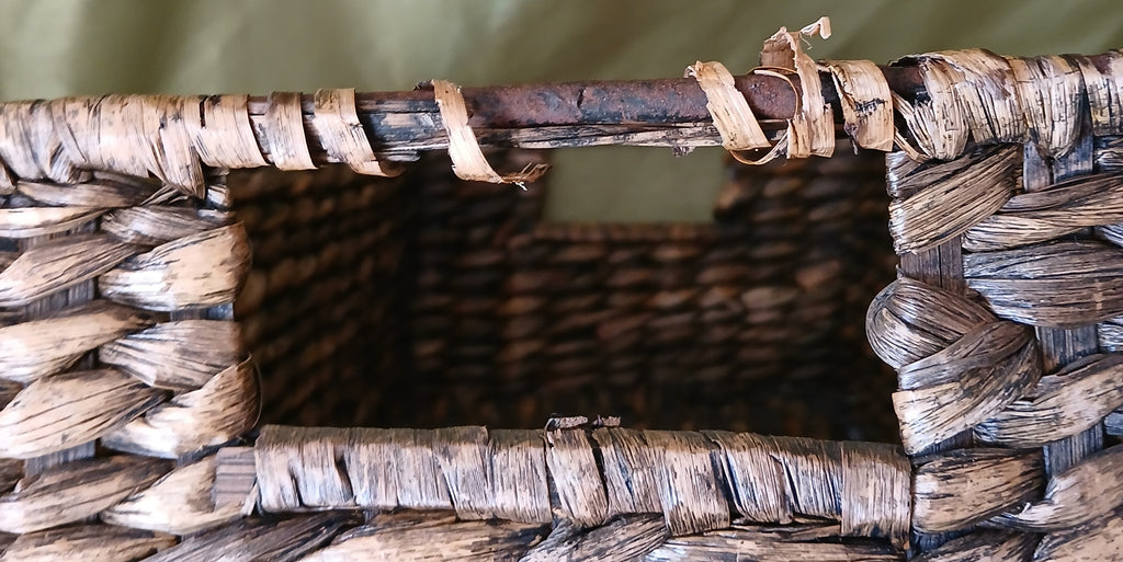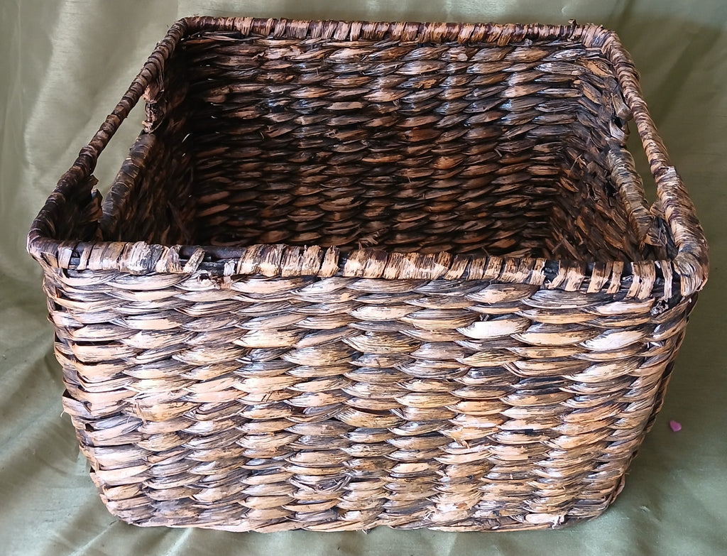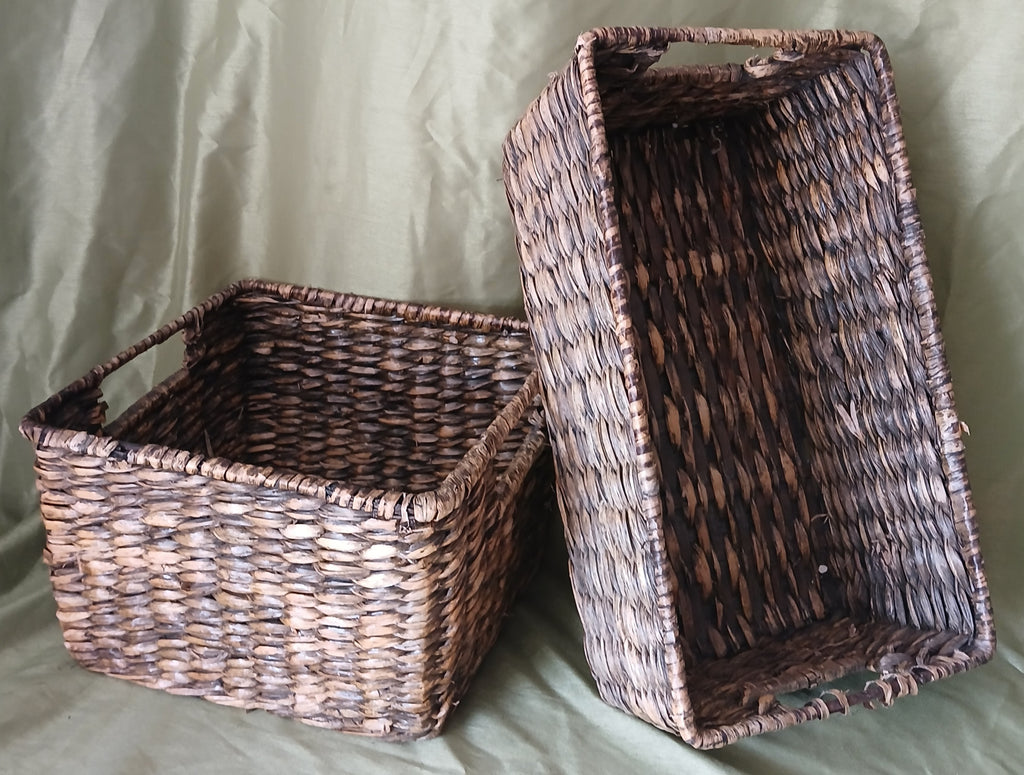 Some wear here & there. See all photos. Rectangular basket measures 18" across x 20" wide x 6" tall. Square basket measures 13" across x 11" wide x 8 1/2" tall. 6688-HG