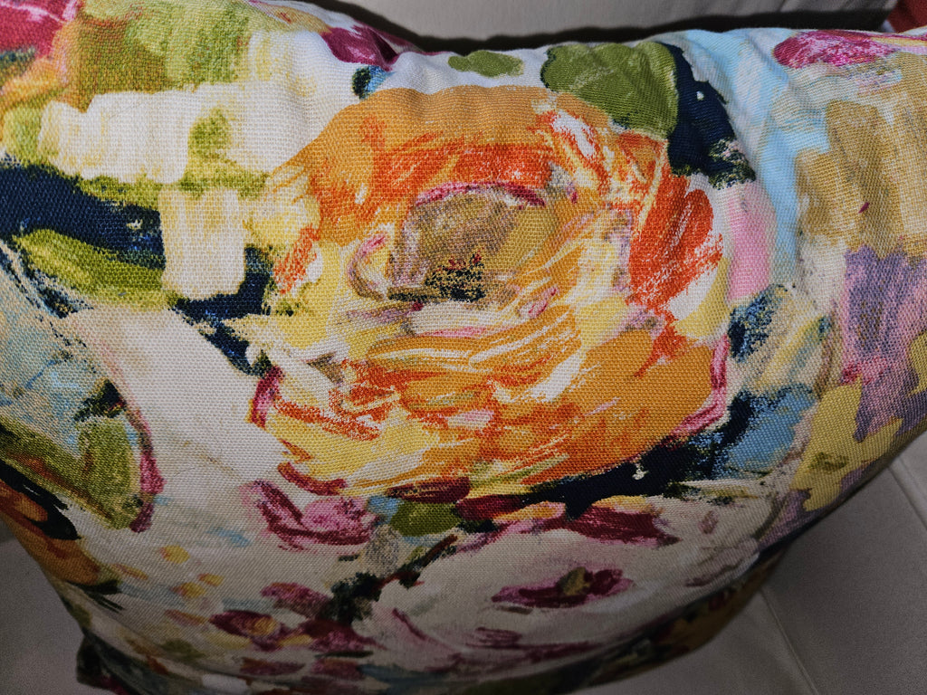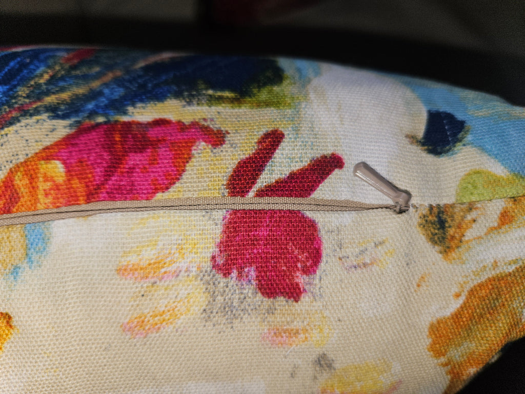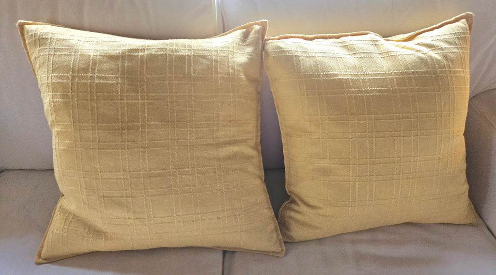 Pillow covers come off for easy washing. Inside, the pillow is feather. Retails for over $100 for the pair. 6628-B11