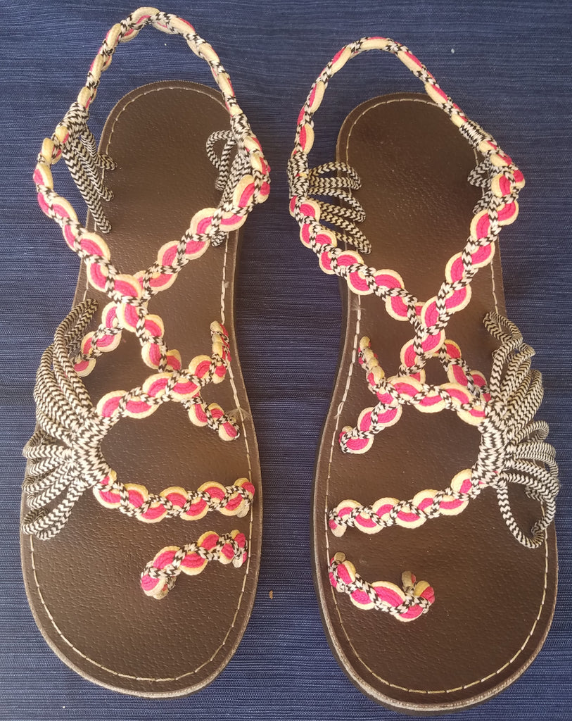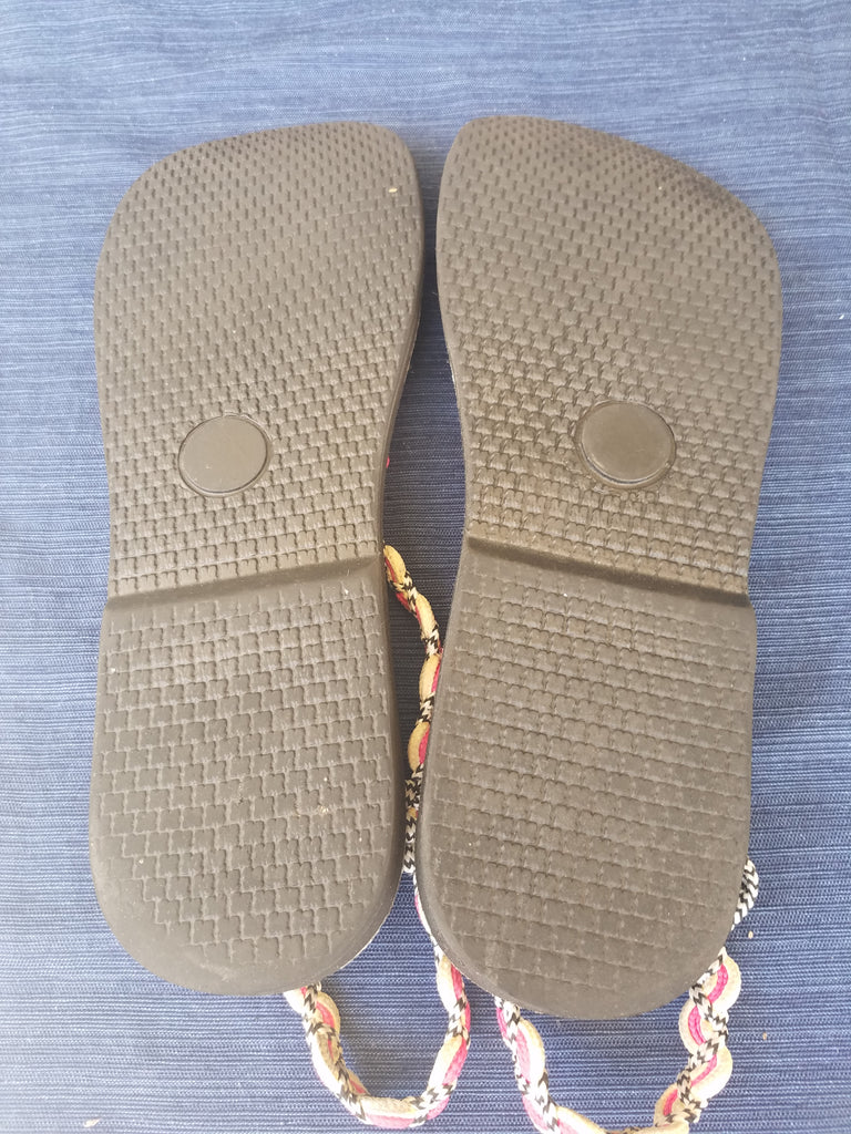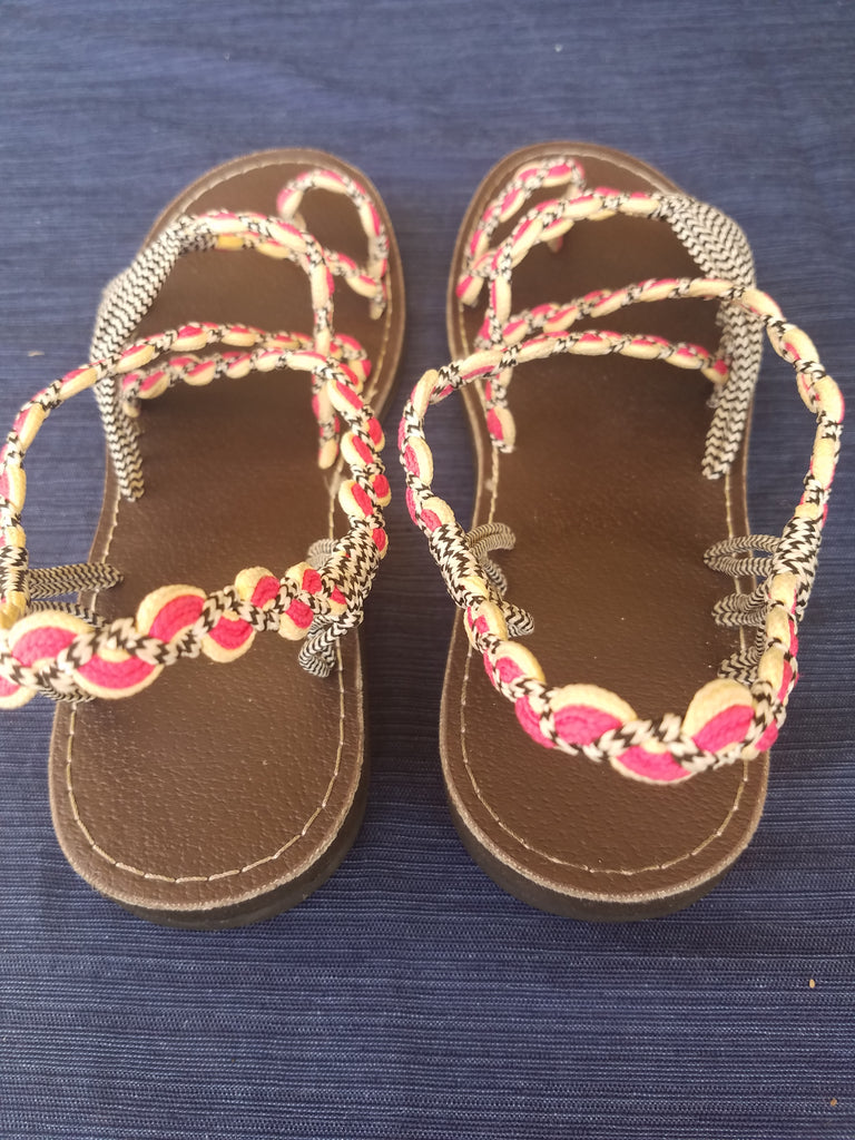 Pre-owned, but like new. Pink, cream, black, and white. Useful for the summer as you can wear them on beach trips, park strolls, or running errands. 003