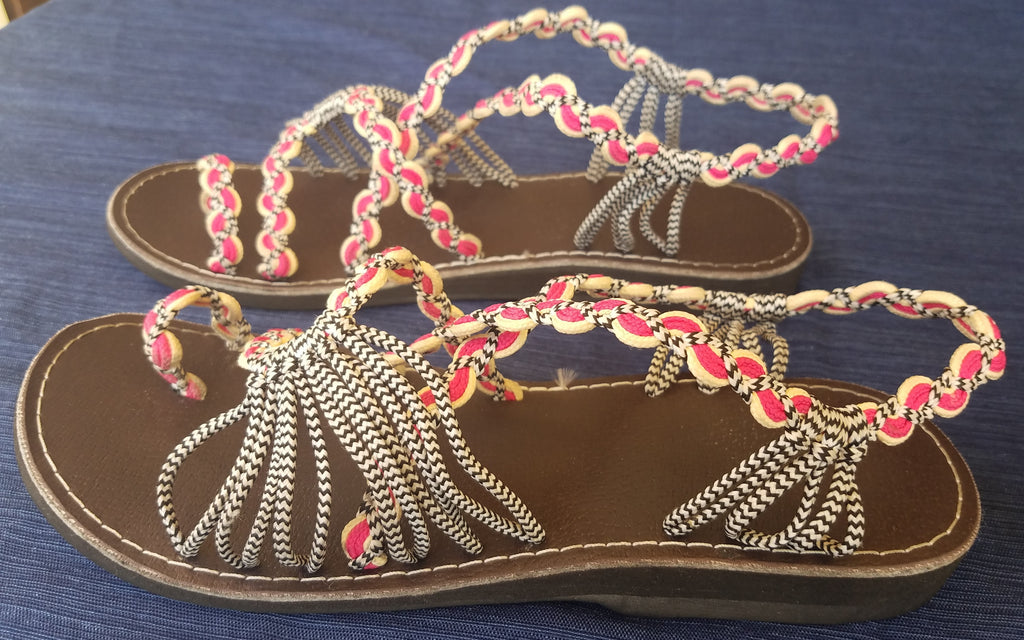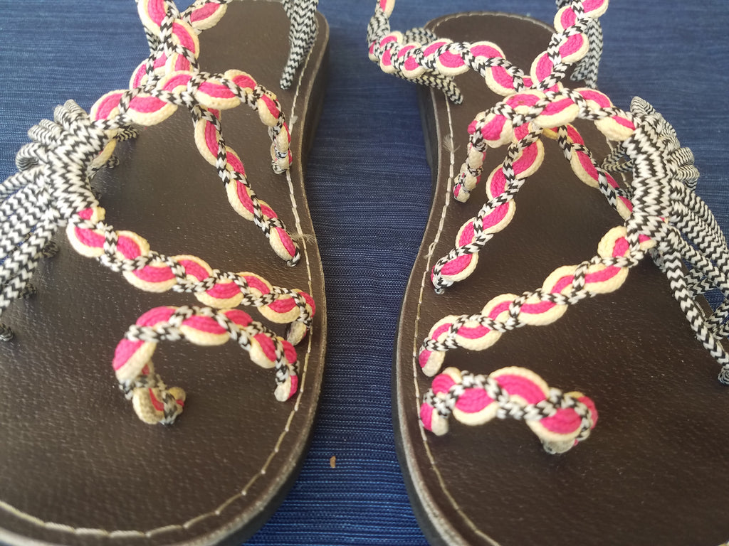 Size 7 Handmade Multi Pattern Pink & Black Sandals