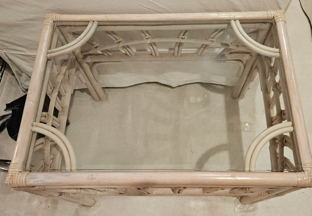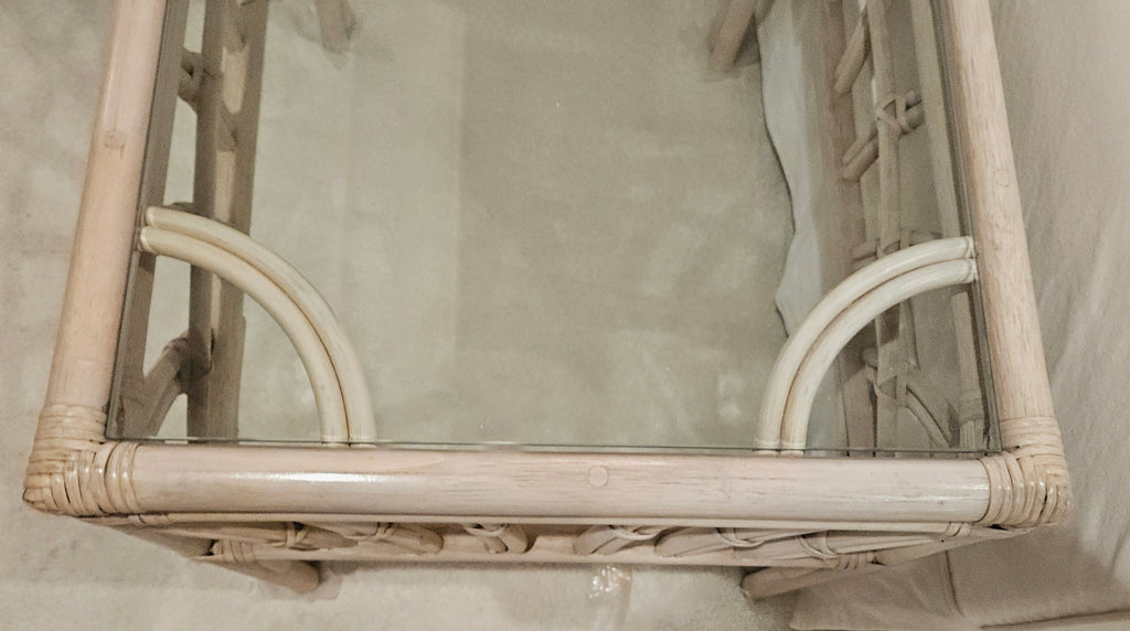Light Tan Bamboo Style Glass Top End Table / Side Table