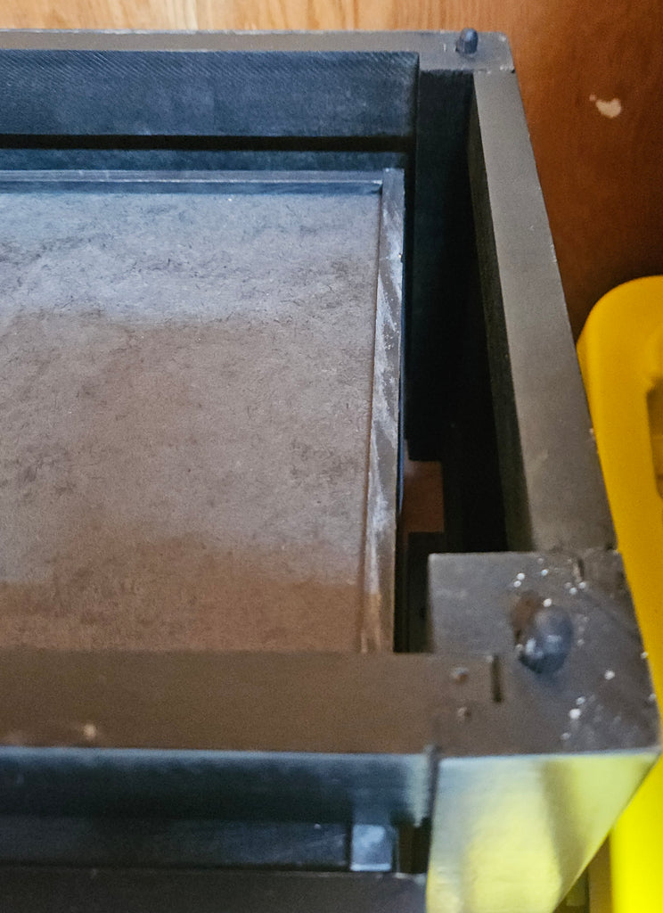 Measures 55" tall, 31.5" across & is 12.5" deep. Comes apart in five pieces for easy transportation. Locks in with small dowels. Two total missing. Don't really need them but can get them for pennies at Home Depot. Has a white sticker on top & two black velcro on the side. Can be removed with scrub or goo-off.
