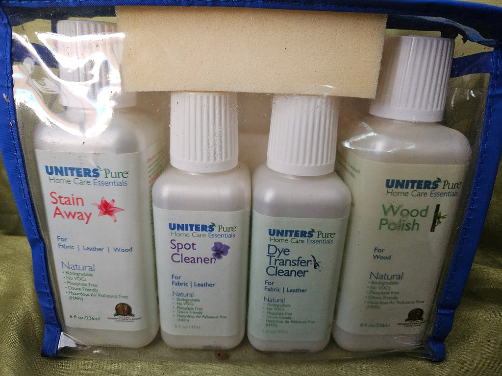 Includes stain away, spot cleaner, dye transfer cleaner, wood polish & sponge applicator. 6327