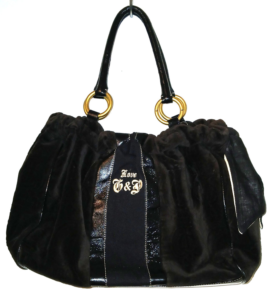 Juicy Couture Brown Velour Black Patent Leather Handbag Purse Stylish Y2K Fashion