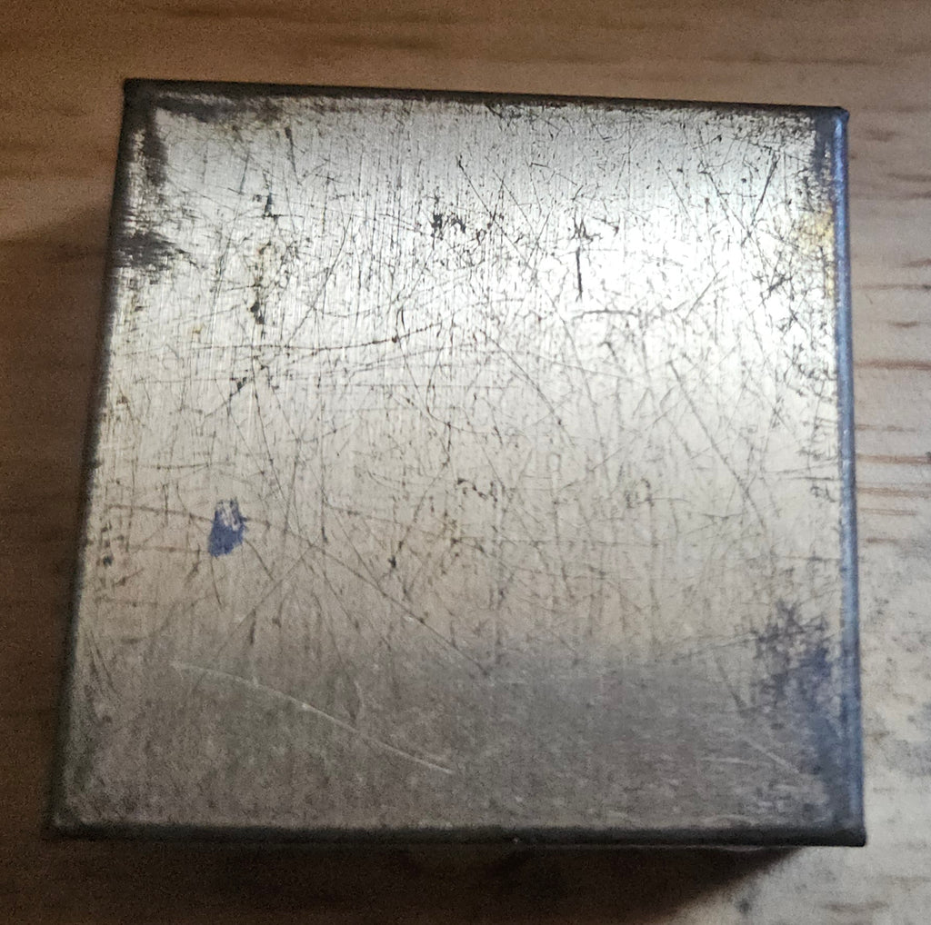 Measures 1 1/2" x 1 1/2" & is 1/2" thick. Wear here & there. 6480