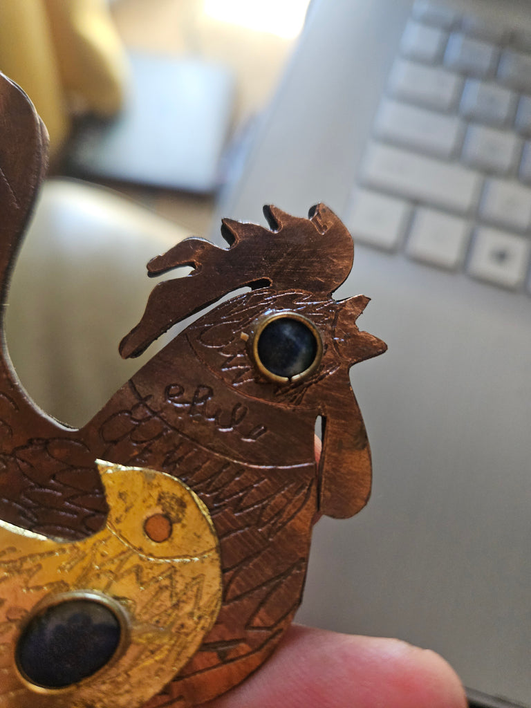 Measures 3/8" x 3" & is 3" tall. Chile engraved at neckline on both sides. 6289