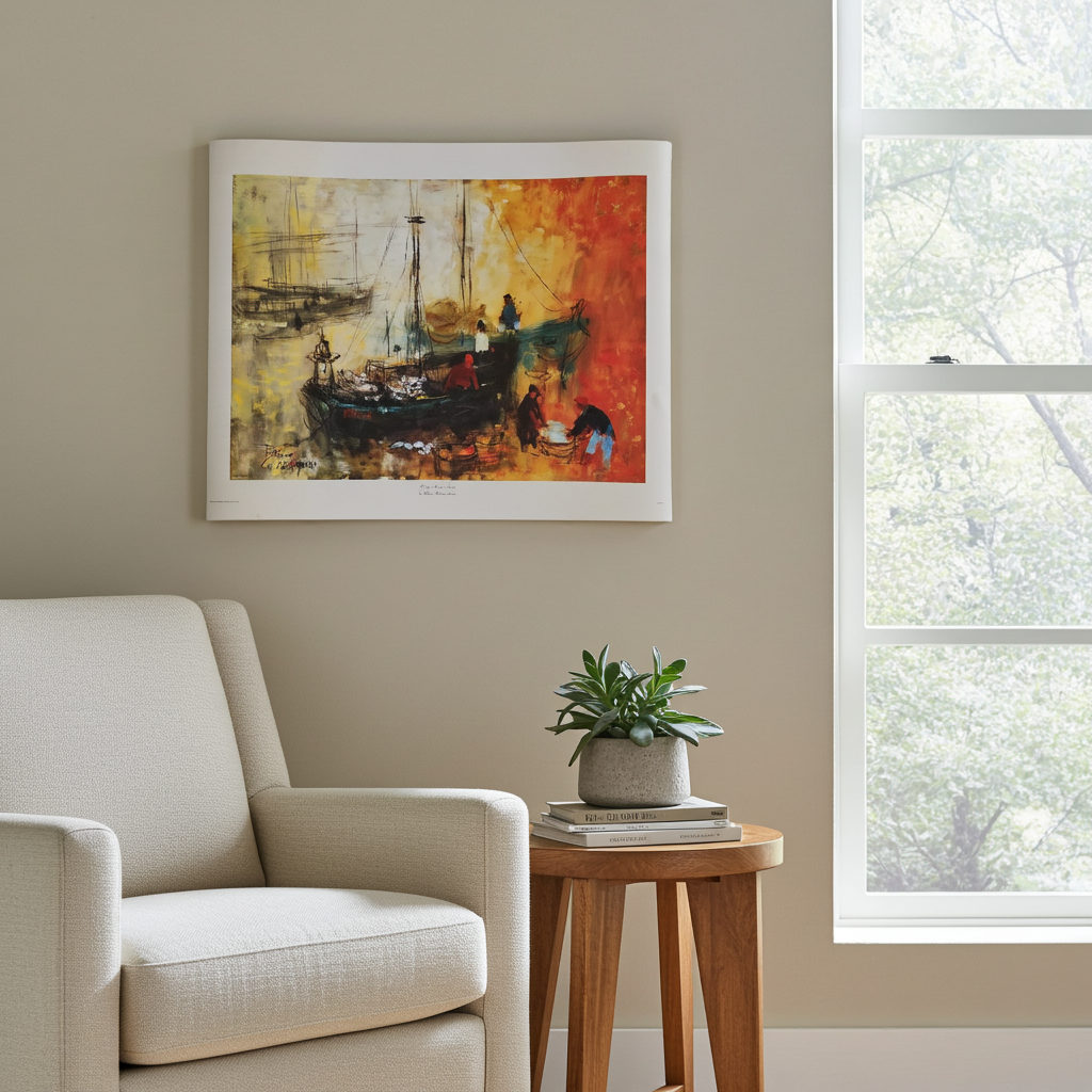 This is not framed. It measures 27.75" x 22.5". Donald Art Company New York. There is a small area of tiny markings on the bottom left (see photos) and would be hidden when framed or matted. Oil painting picture undisturbed and in excellent condition. 36