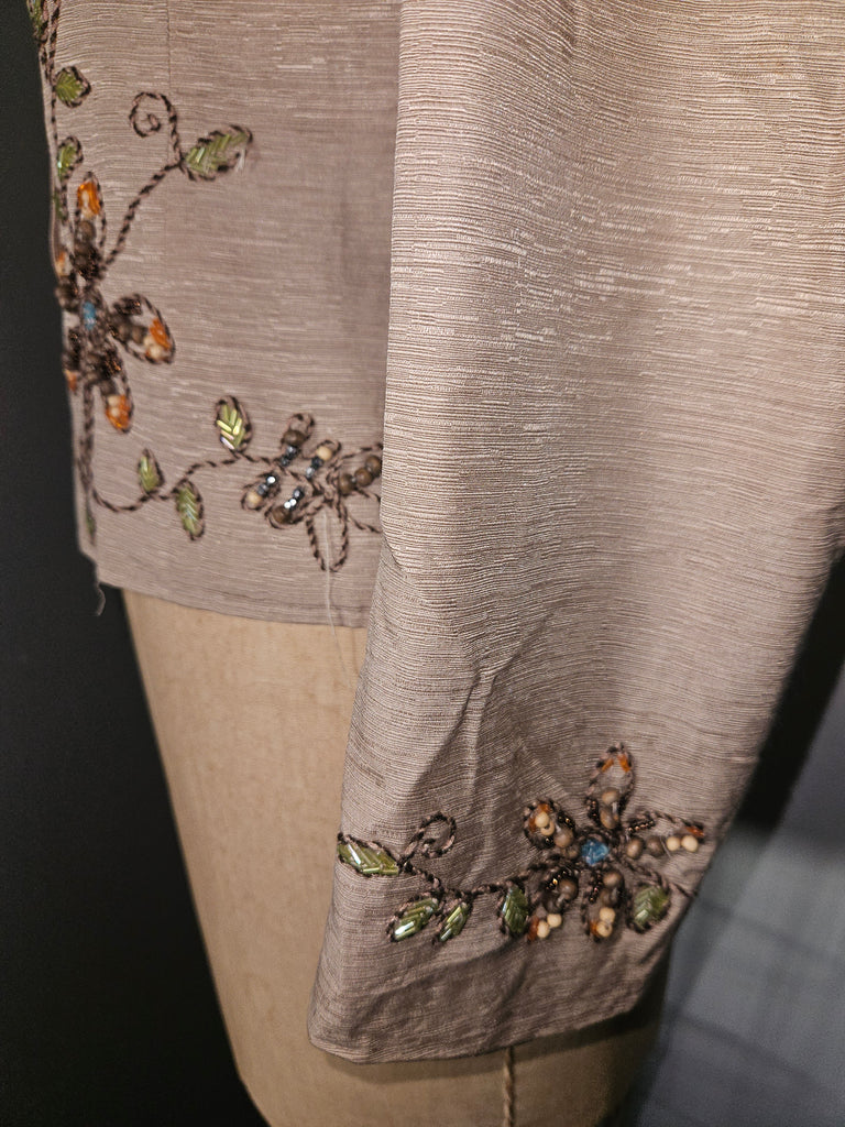 Size Large Women's Vintage LIFE STYLE Black Paris Theme Button Front Blouse w/ Sequence